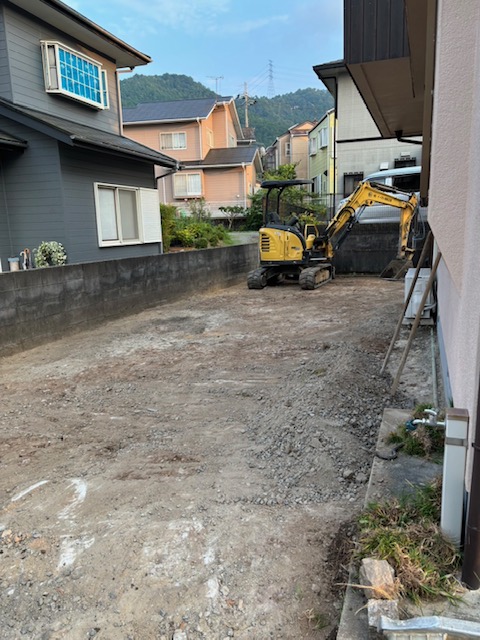 庭の整地は不要な石や雑草を重機や手作業で取り除き平らなきれいな状態にします。