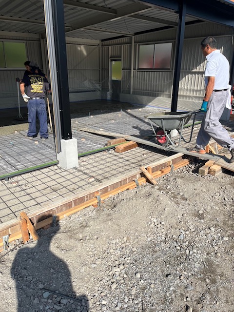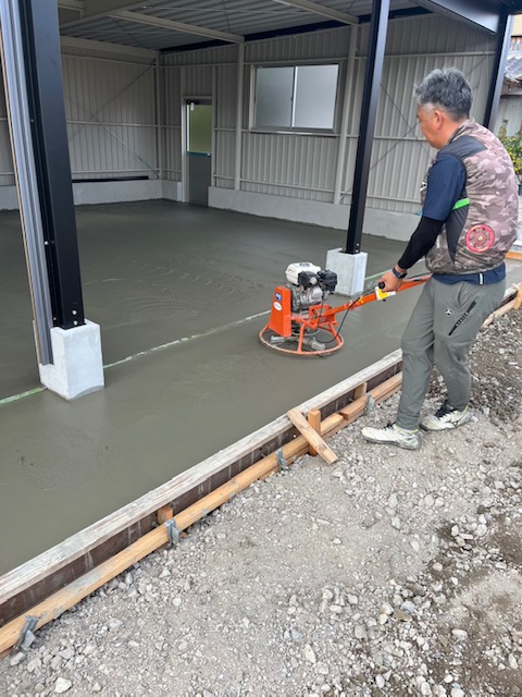 地盤の処理・砕石層の敷設・コンクリート打設・表面仕上げまで完了し養生と型枠を解体すれば完成です。