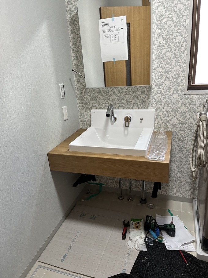 洗面化粧台の入れ替えを行っております。